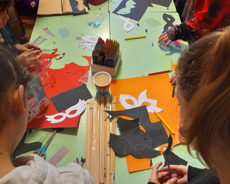 The next meeting was on February 1, we created the classic Venetian carnival masks with a lot of colors glitter and feathers... So fancy!
